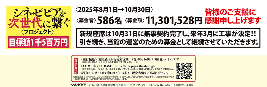 | 24/11/7 | 【緊急】11/10(月)サーバーメンテナンス実施について いつもシネ・ピピアをご利用いただきまして誠にありがとうございます。 オンラインチケット販売のホストサーバメンテナンスに伴いまして、下記日時において一時的にオンラインでのチケット販売を休止させていただきます。 ご利用のお客様には大変ご迷惑をおかけいたしますが、何卒ご理解ご協力のほど、よろしくお願いいたします。 ■実施日:11月10日(月)16:00~17:00 |